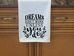 Dreams Don't Work Unless You Do. Inspirational Flour Sack Towel